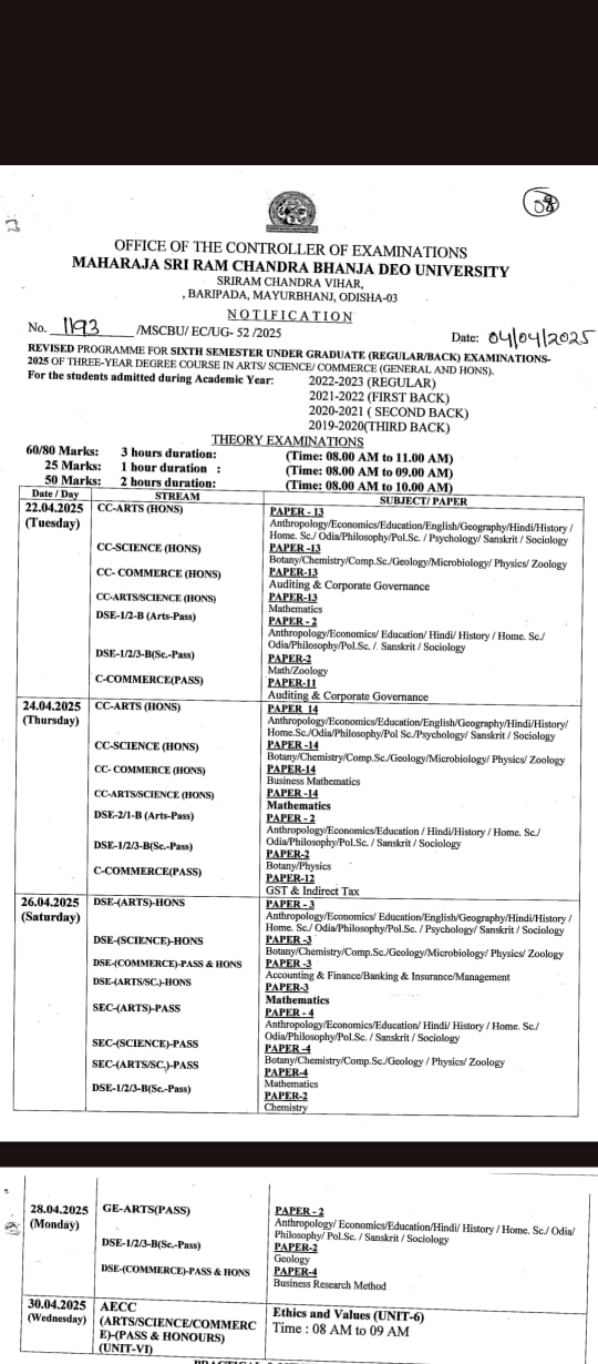 Revised 6th Semester (R/B) Exam 2025